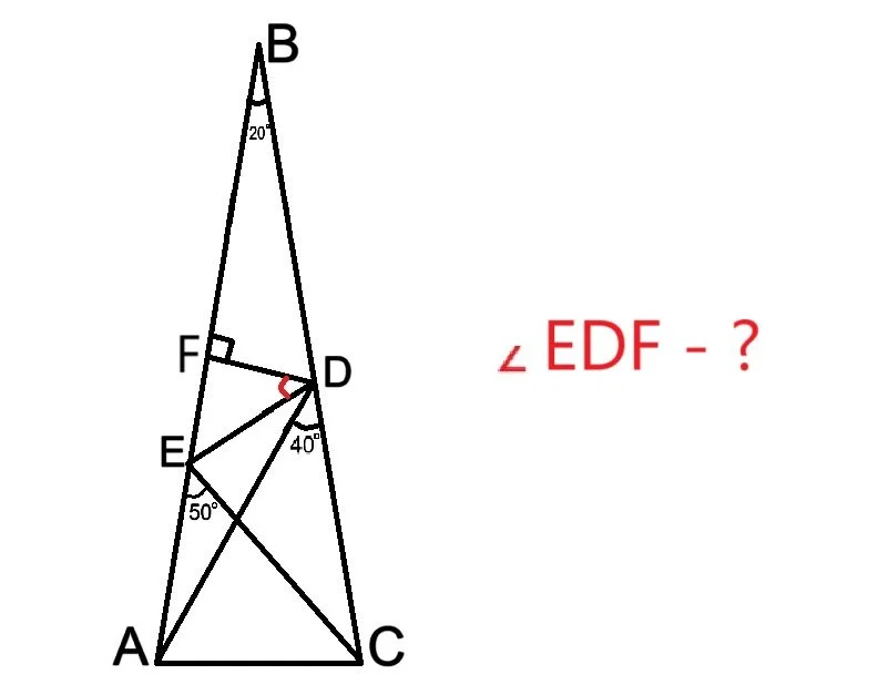На боковой стороне BC взята точка D, так, что угол ADC = 40°